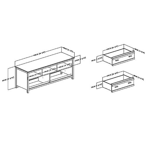The South Shore Exhibit TV stand is just what you need to enhance your living-room. With this stand you will no longer have trailing cables because the power bar can be hidden inside the unit’s storage space. Stand hold TV’s up to 60 inches wide. Dimensions: 22.25"H x 59.5"W x 19.5"D.
