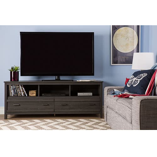Description The South Shore Exhibit TV stand is just what you need to enhance your living-room. With this stand you will no longer have trailing cables because the power bar can...