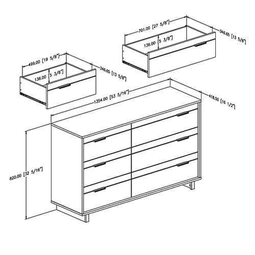 Description This modern-looking South Shore Fynn 6-drawer double dresser features asymmetric lines and a trendy finish; perfect for kids´ rooms! This item requires oversize...