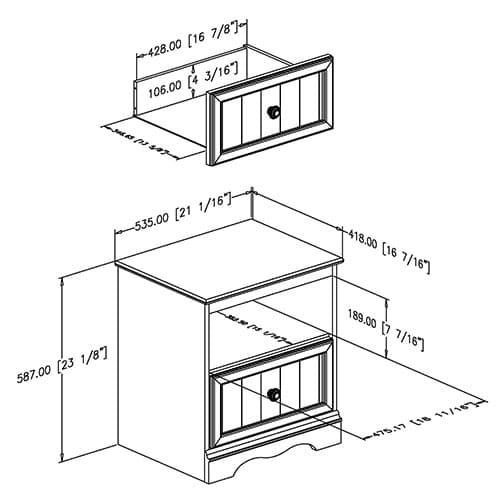 The details of the South Shore Savannah 1-drawer nightstand is what gives this set a classic look that will help create a warm, cozy room. This nightstand was designed with both safety and style in mind, so you can set up a well ordered and practical room while creating a pleasant, comfortable space for your child. Dimensions: 22.75"H x 20.25"W x 16.5"D.