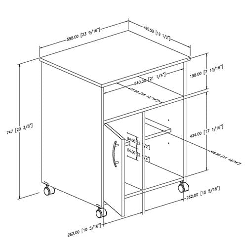 This South Shore Axess printer stand is both attractive and functional with its clean contemporary styling. This printer stand is sure to enhance any home office with its neutral finish that matches many different environments, and is highlighted by sleek metal hardware. This item offers open and closed storage with one door and one adjustable shelf. Dimensions: 29.5” H x 23.5”W x 19.5”D.