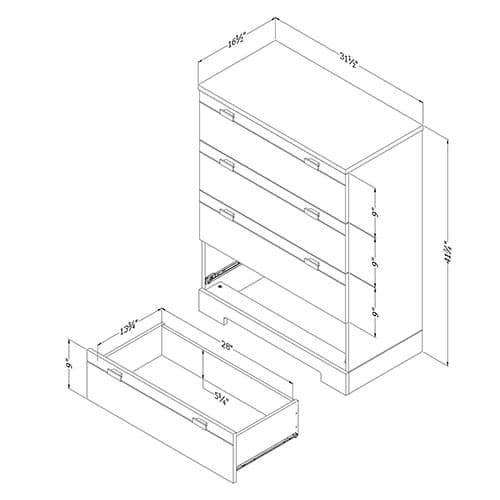 Use this South Shore Reevo 4-drawer chest to add storage space to your kids’ room or your own! Thanks to its neutral finish you can pair it with other décors in the colors of your choice. Dimensions: 41.75"H x 31.5"W x 16.5"D.
