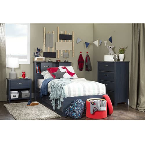 The South Shore Ulysses twin bookcase headboard will blend perfectly with your kid’s classic style or even your own! This headboard with sliding doors features rich, timeless finish that will add a touch of distinction to your decor. Dimensions: 40.2”H x 43.25”W x 9.45“D