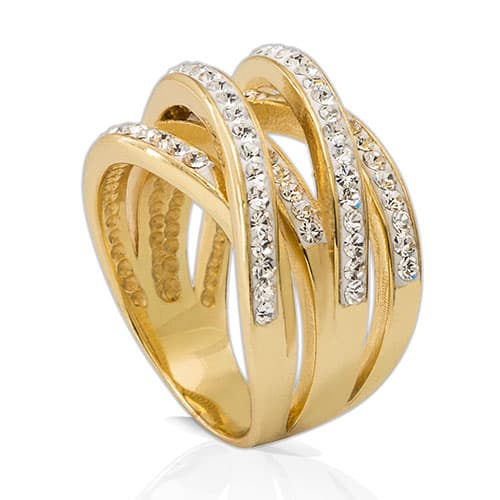 You´ll wow the room with this yellow flash plated brass five row pave crystal wrapped ring.
