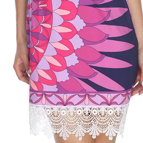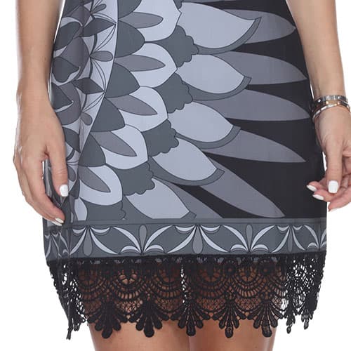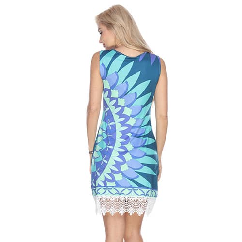 Description The Womens White Mark Kaia short sheath sleeveless dress showcases a scoop neck and a natural crochet lace hemline. 95% Polyester. 5% Spandex. Hand wash, hang dry....