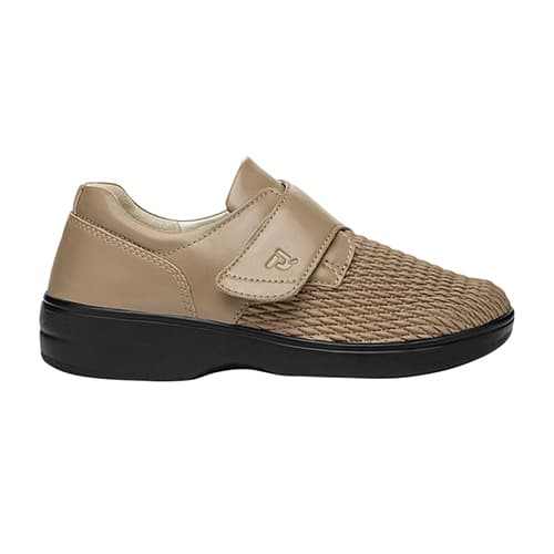 The Womens Propèt® Olivia fashion sneakers feature a soft leather and polyurethane upper with a flexible and textured vamp. Additional features include a wide hook and loop strap, firm heel stabilizer, and a double removable footbed.
