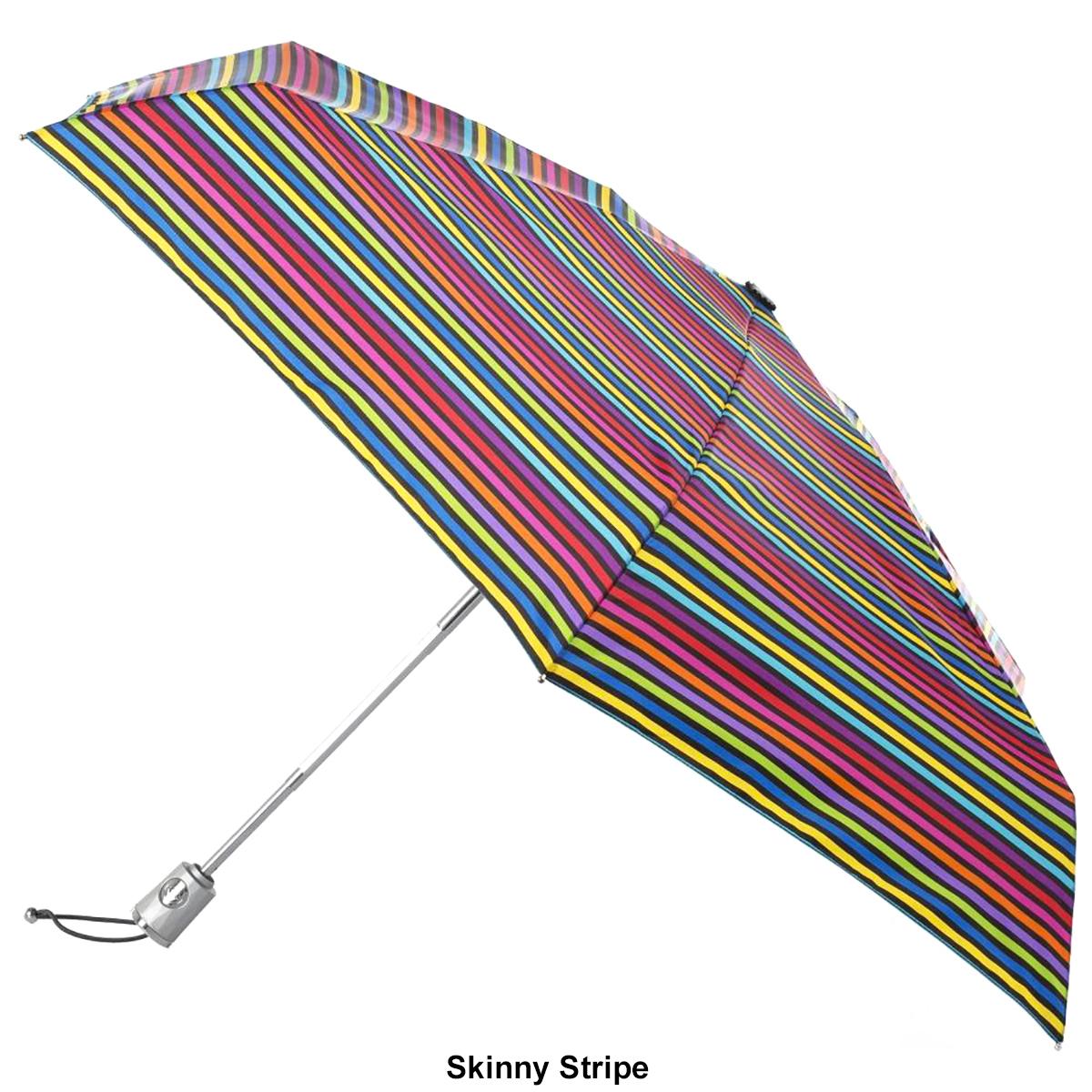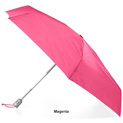 Totes automatic open and close 4 section umbrella. Standard umbrellas leave a dripping mess wherever they go. With invisible coating, rain rolls right off and the umbrella stays 4 times drier – no dripping mess! You´ll be cooler in the sun and always prepared for a surprise popup shower with the totes mini auto open/close umbrella. SunGuard® provides UPF 50+ protection that blocks 98 percent of harmful UV rays and keeps you up to 30 degrees cooler. Compact design stashes easily in your purse or bag. Auto open and close -- one push of a button opens the umbrella, one push closes it. Backed by Totes limited lifetime warranty for peace of mind. Care instructions: Leave open to dry. Wipe clean with a damp cloth.