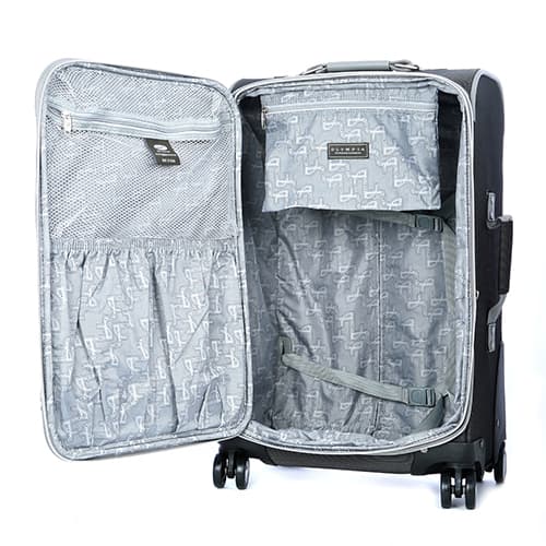 The Olympia USA 25 inch Tuscany spinner showcases a fully expandable option for added packing space, dual spinner wheels that move in all directions for simple mobility, and a U-tube push button and retractable handle. Other features include a front zippered pocket for easy access, EVA foam padded front panels, a 21” water bottle pocket, and elastic tie belts on the inside for keeping your clothing in place. 2-Tone Polyester materials. Dimensions: 25”H x 9”W x 16”D. Weight: 10 lbs.