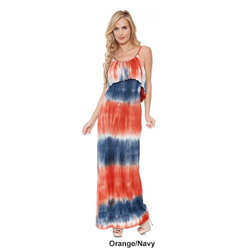 If you feel like unleashing your inner femme fatale, then this sleeveless, sleek Womens White Mark Kalea tie dye maxi dress is for you! This overlay top maxi dress is an awesome layered piece perfect for a summer day or fancied up for a wedding. 95% Rayon. 5% Spandex. Hand wash. Line dry.