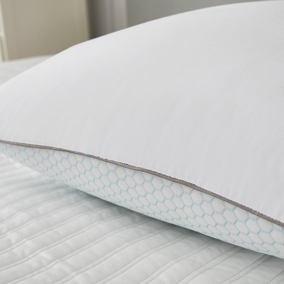 Why does your bed pillow get warm? Basically, the heat generated by your head is absorbed by your pillow and ultimately causes you sleep discomfort. Serta®´s Summer and Winter pillows feature a proprietary cooling fabric that keeps you cooler during the warmer summer months or perfect year-round if you’re warm sleeper. The reverse side of the pillow is a breathable 100% cotton cover which is great when it’s a little cooler outside, or if you tend to keep the thermostat turned down a few degrees. This pillow is filled with the perfect amount of white goose feathers for medium firmness, and great for all sleeping positions.