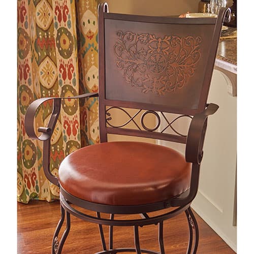 Linon Home Decor Big & Tall bar stool with arms is designed to suit people large and small. The plush upholstered seat is generous in size, providing for optimal comfort. The stamped back adds visual interest and appeal to the stool while the curved arms and legs keep the piece from becoming too masculine. This stool is perfect use at a kitchen counter, island, or high top table. Dimensions: 51"H x 21.5"W x 23"D.