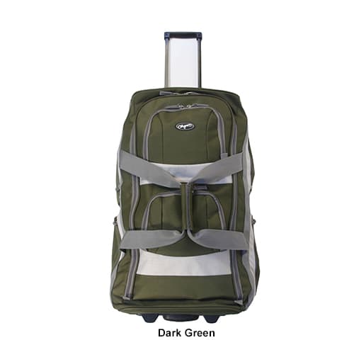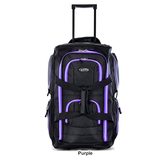 Description The Olympia USA 22 inch rolling duffel showcases recessed ball bearing in-line skate wheels with a hideaway retractable handle and zipper closure with 8 pockets for...