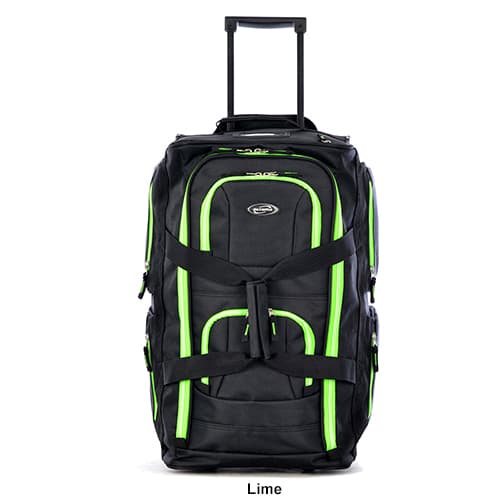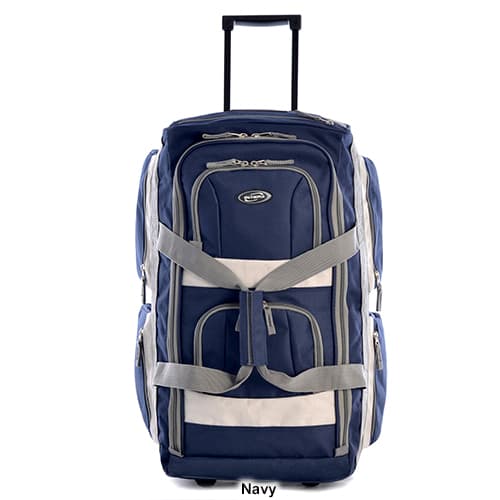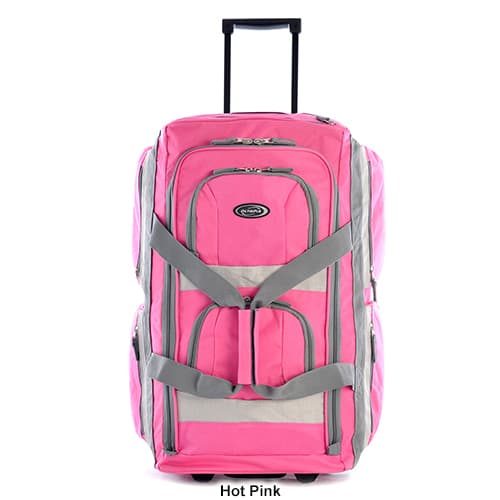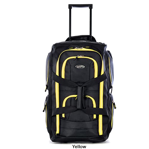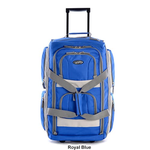 The Olympia USA 22 inch rolling duffel showcases recessed ball bearing in-line skate wheels with a hideaway retractable handle and zipper closure with 8 pockets for maximum packing. Other features include a U-top opening and self-repairing zippers. Supreme Polyester materials. Dimensions: 22”H x 12”W x 6”D. Weight: 6 lbs.