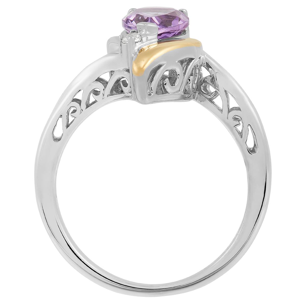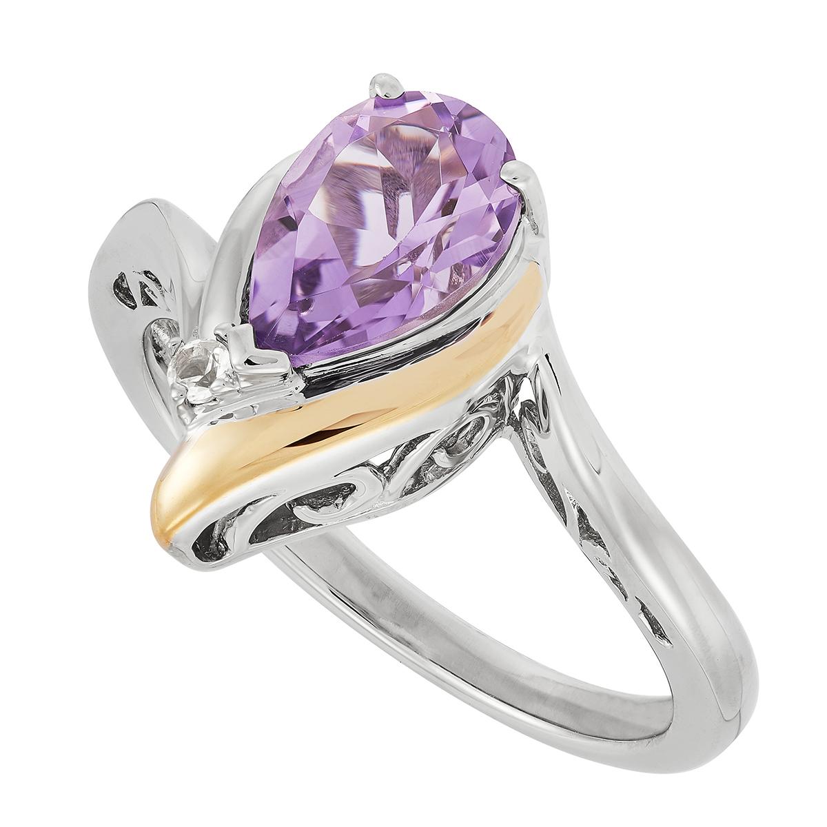 Amethyst is the birthstone for February. If your birthday is in February and you want to wear a birthstone ring, then accessorize yourself with this Gemstone Classics™ gold over sterling silver beautiful Pear Amethyst Ring. This Amethyst & White Topaz ring is a classic style, with an eye-catching yellow gold accent.