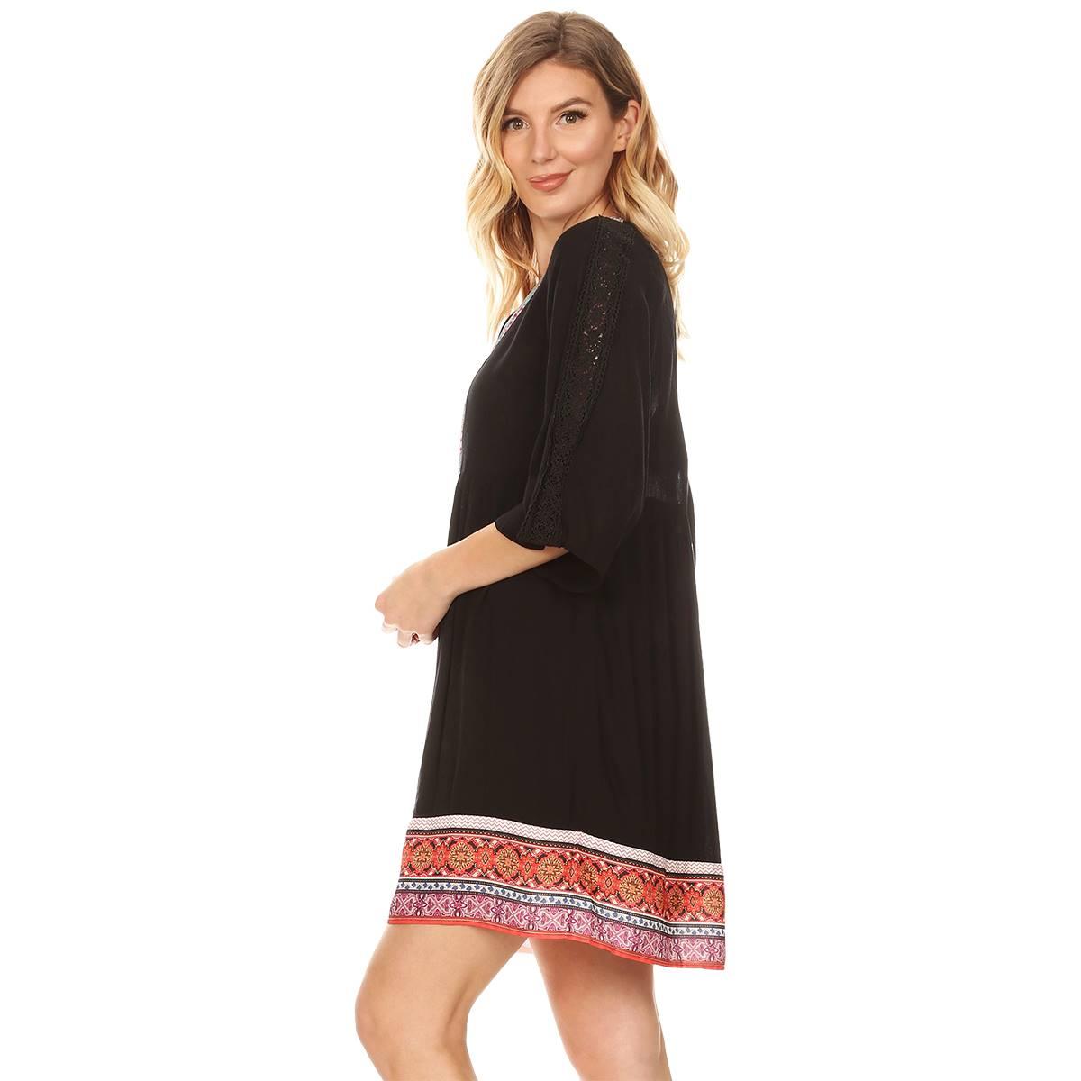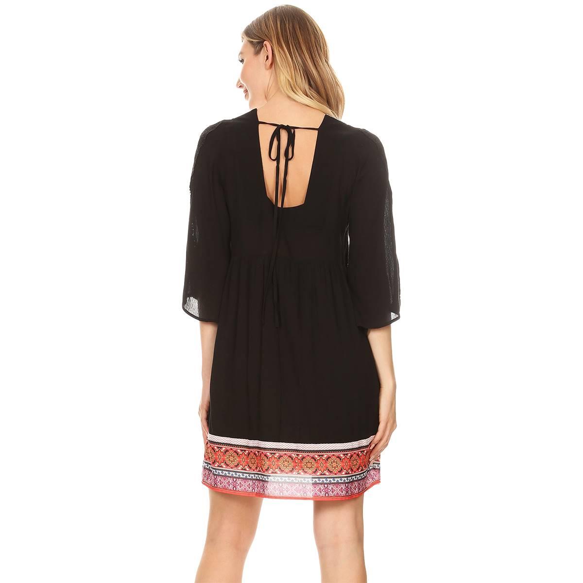 This slightly sheer Womens White Mark Gabrielle shift dress is made with classic gauzy fabric featuring beautiful and colorful embroidery detailing along the v-neck and the bottom hem. This short dress also features 3/4 length bell sleeves.