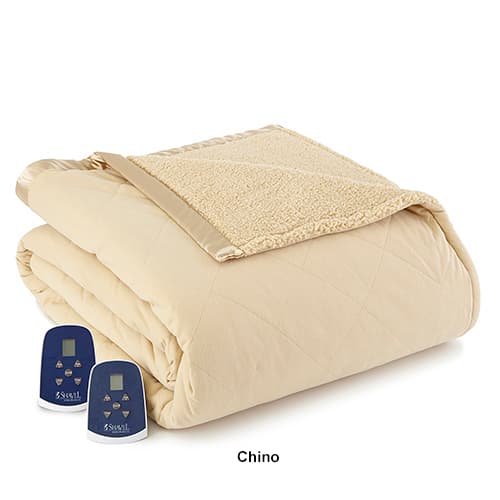Description The Shavel Home Products Micro Flannel® reverses to Sherpa electric heated blanket showcases a quilted top that perfectly adds a touch of fashion with its reversible...