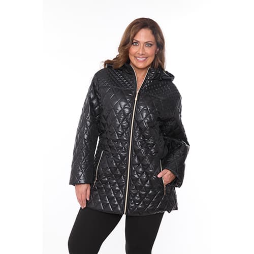 Description Whether you are hitting the slopes or going into town, the Plus Size White Mark puffer coat is sure to stand out in the crowd! 100% Polyester. Hand wash. Line dry....