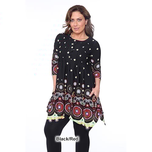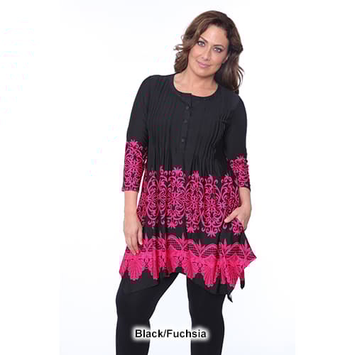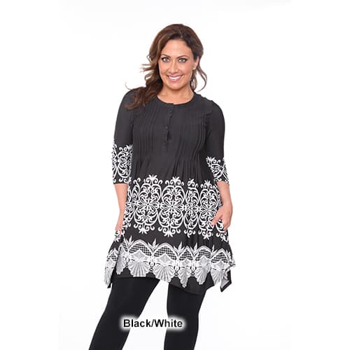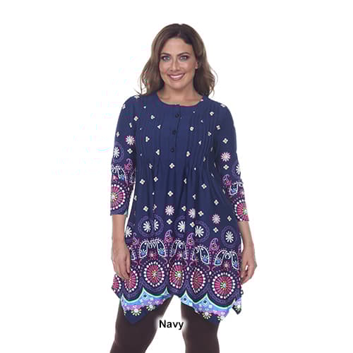 Description Look gorgeous and feel comfortable in this Plus Size White Mark Lucy medallion print tunic. This tunic features 2 pockets, pin tuck pleats, and a buttoned neck. Care:...