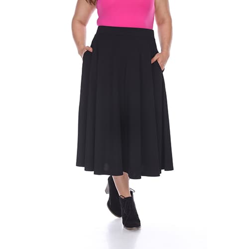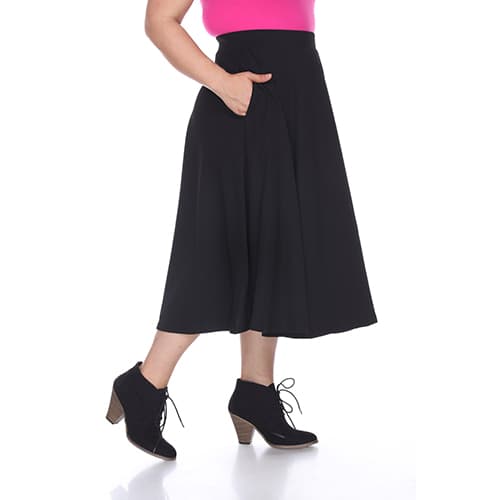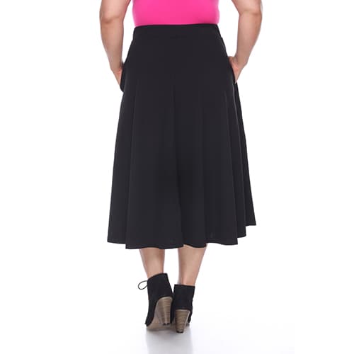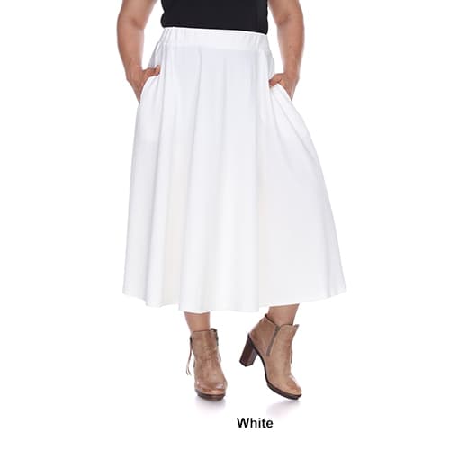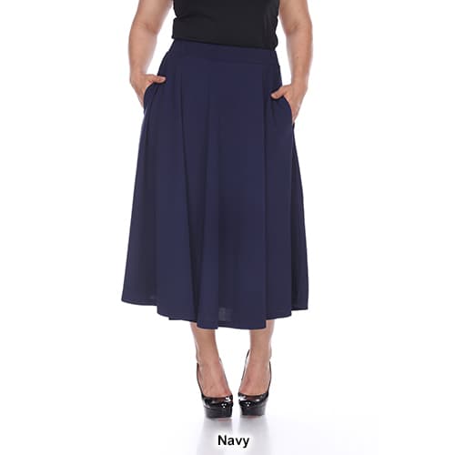 Description This adorable Plus Size White Mark Tasmin flare midi skirt will be your new go to item all year round! This skirt features a solid color and textured Liverpool fabric...