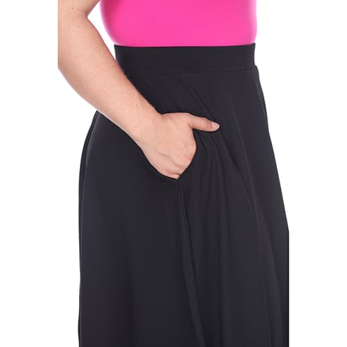 This adorable Plus Size White Mark Tasmin flare midi skirt will be your new go to item all year round! This skirt features a solid color and textured Liverpool fabric that is sure to draw attention. It is comfortable on the waist due to the elastic waistband and flares out creating a feminine look. The skirt also has 2 front pockets that are both stylish and functional. 95% Polyester, 5% Spandex. Hand wash. Line dry.