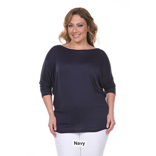 Description You can wear this Plus Size White Mark solid top with batwing 3/4 sleeves and a round neck. This top is a downtime essential and is perfect to wear layered, or on its...