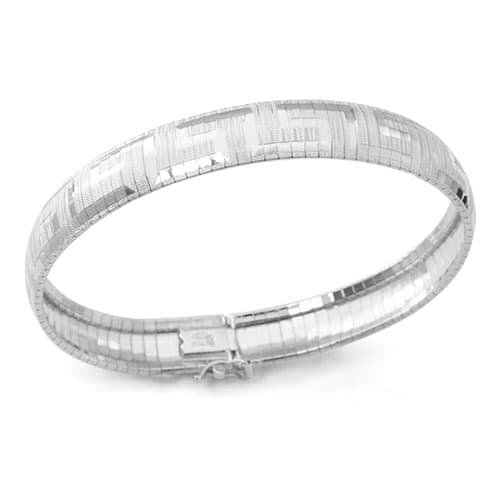 Description Ellen Tracy sterling silver textured omega bracelet detailed with greek keys. Size: 7.5 inch. Material: Sterling Silver Item #: 541376 Pricing Disclosure