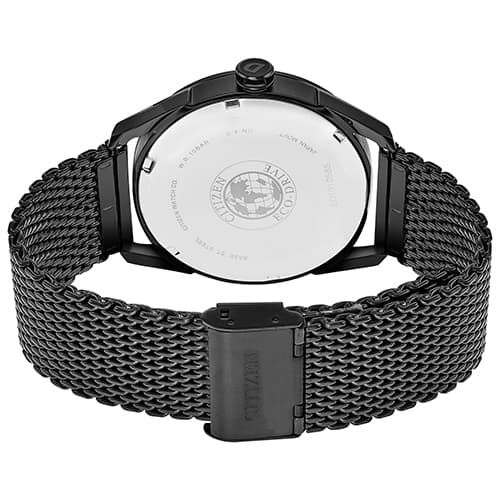 The Men Citizen® Eco-Drive titanium watch is powered by light and Eco-Drive technology. It is maintenance free and will never need a battery change. The design features a black-tone stainless steel case, black-tone Milanese mesh bracelet, a sleek black dial and black accents. This watch uses a sliding clasp for closure. Watch Case: 42mm.Style BM6988-57E.Limited Manufacturer´s Warranty.