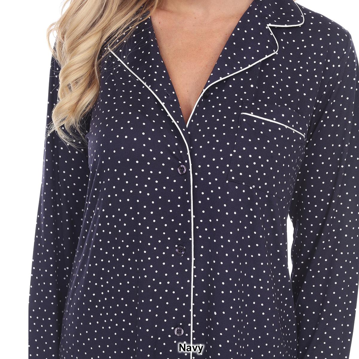 Description Sleep through the night in the Womens White Mark nightshirt. Made of breathable polyester and features a notch collar, long-sleeves, easy-wear button front, and chest...