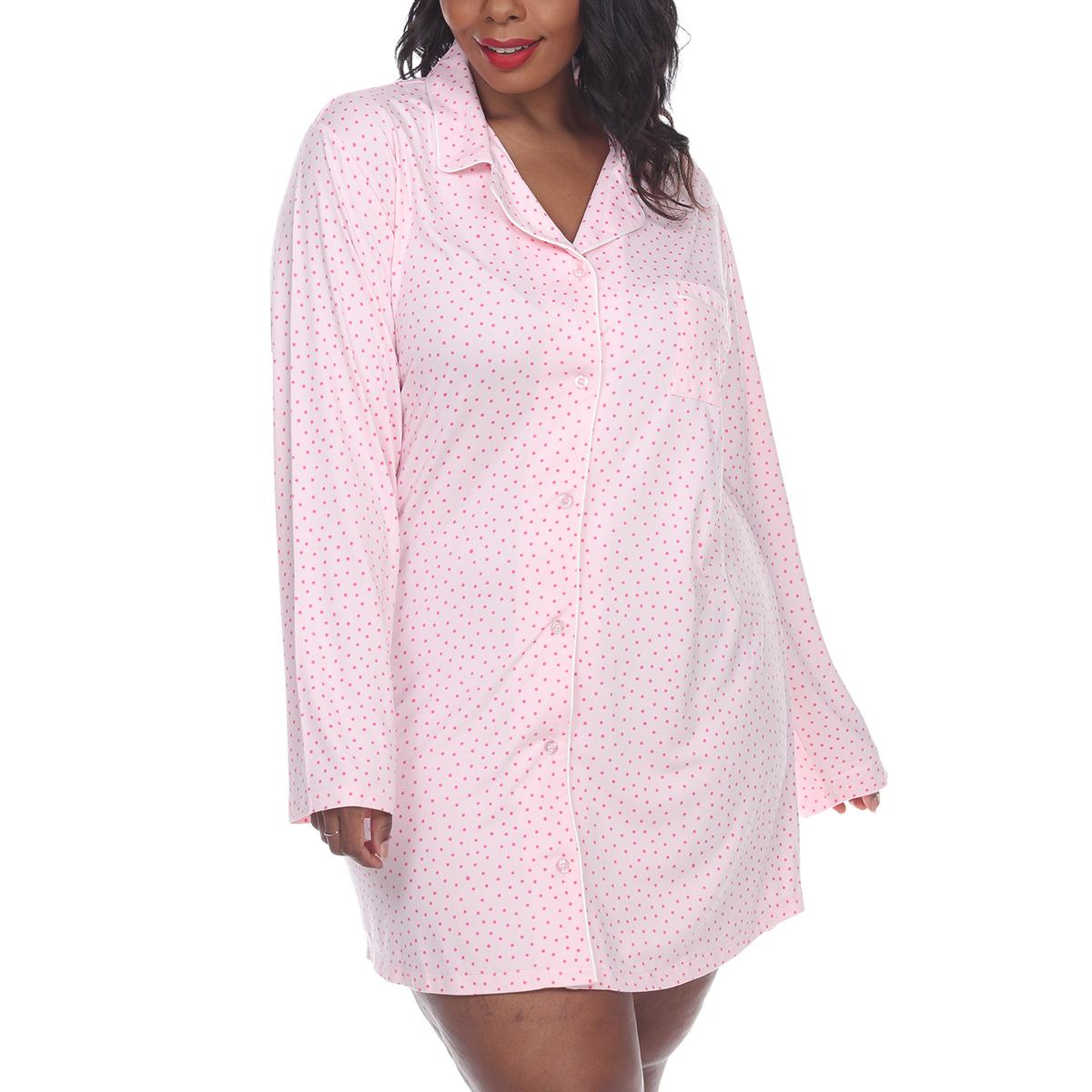 Description Sleep through the night in the Plus Size White Mark nightshirt. Made of breathable polyester and features a notch collar, long-sleeves, easy-wear button front, and...