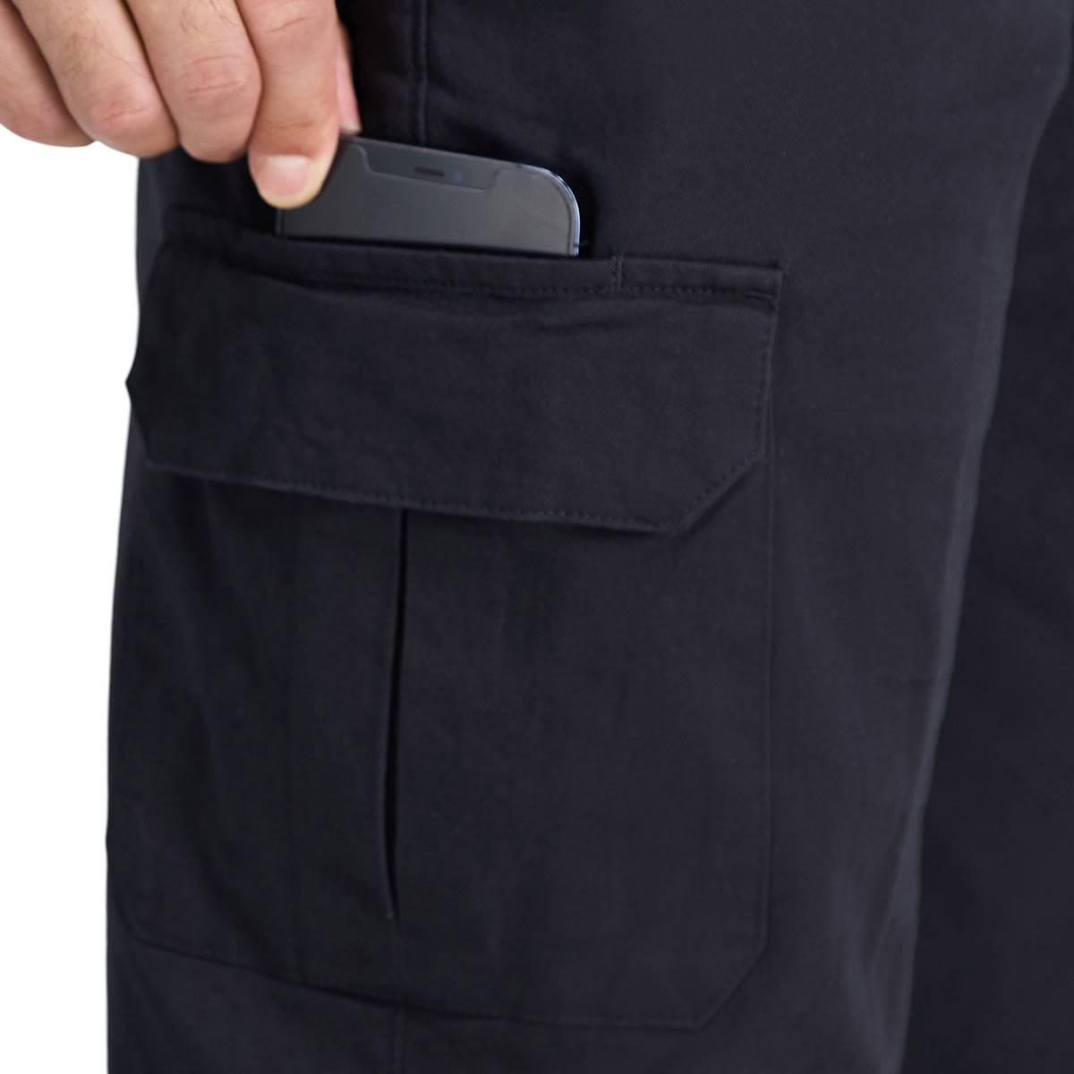 These durable comfort stretch cotton cargo pants are designed for utility without the extra bagginess. From the subtle stretch in the signature waistband to built-in spandex fibers. It´s no wonder Haggar puts "comfort" in the name. The hidden expandable waistband allows up to 3" of stretch on your mid-section. The cargo pocket features a flap closure with hidden insert.