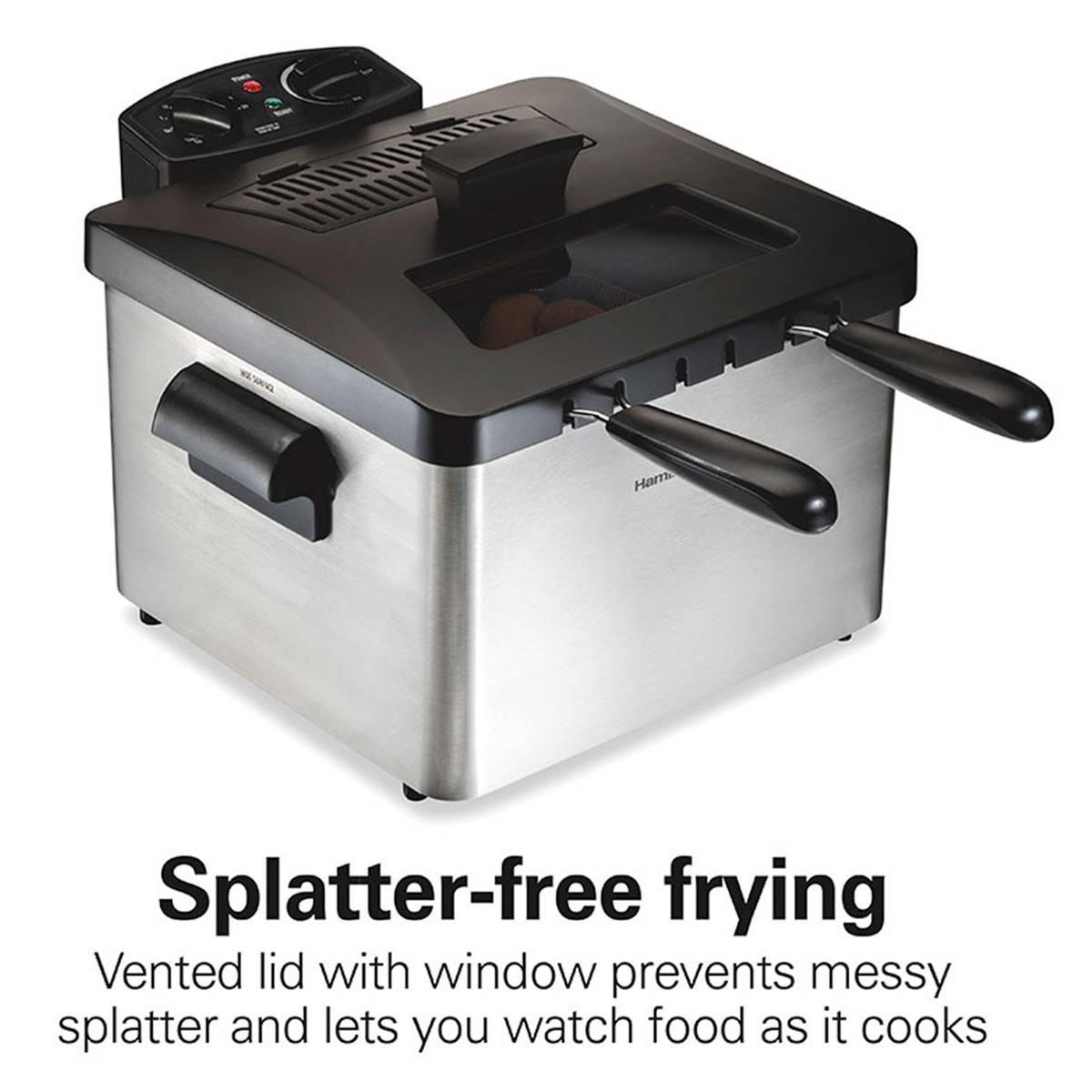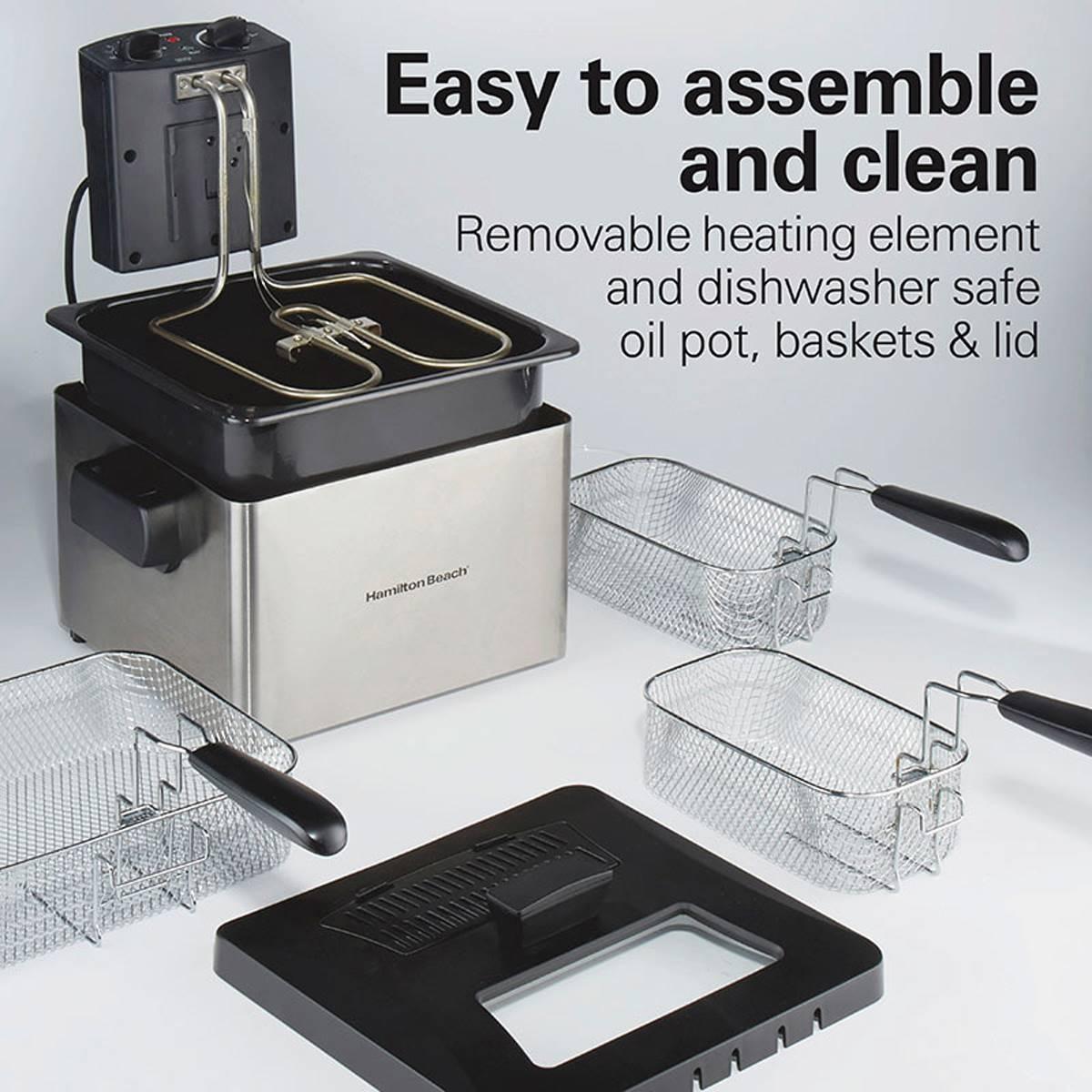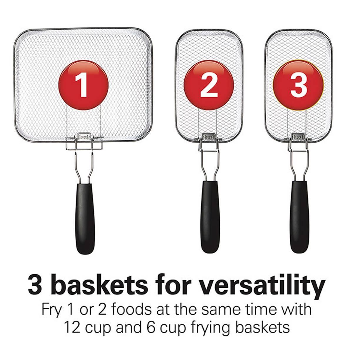 Description The Hamilton Beach® Professional-Style XL 12 Cup Deep Fryer helps you fry like a pro. The double baskets let you fry different foods at once or use the large basket...