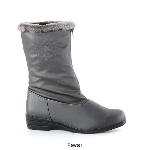 The Womens Judith™ Sport Snowflake waterproof winter boots offer a fleece lining. These boots will keep your feet warm and dry in the cold winter months. The front zipper makes this boot easy to put on and take off. Embellished with snowflake design on the outside calf. The rubberized sole makes this boot extra comfy!