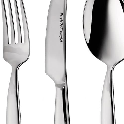 BergHOFF 30 piece Finesse silverware set design is the epitome of elegance and style. This silverware is timeless and will be a great addition to any dining room. Service for 6 guests and is 18/10 stainless steel. Hand wash is recommended. Set includes: 6, 5 piece settings; Fork, Knife, Spoon, Cake Fork and Coffee Spoon.Limited Manufacturer´s Warranty.