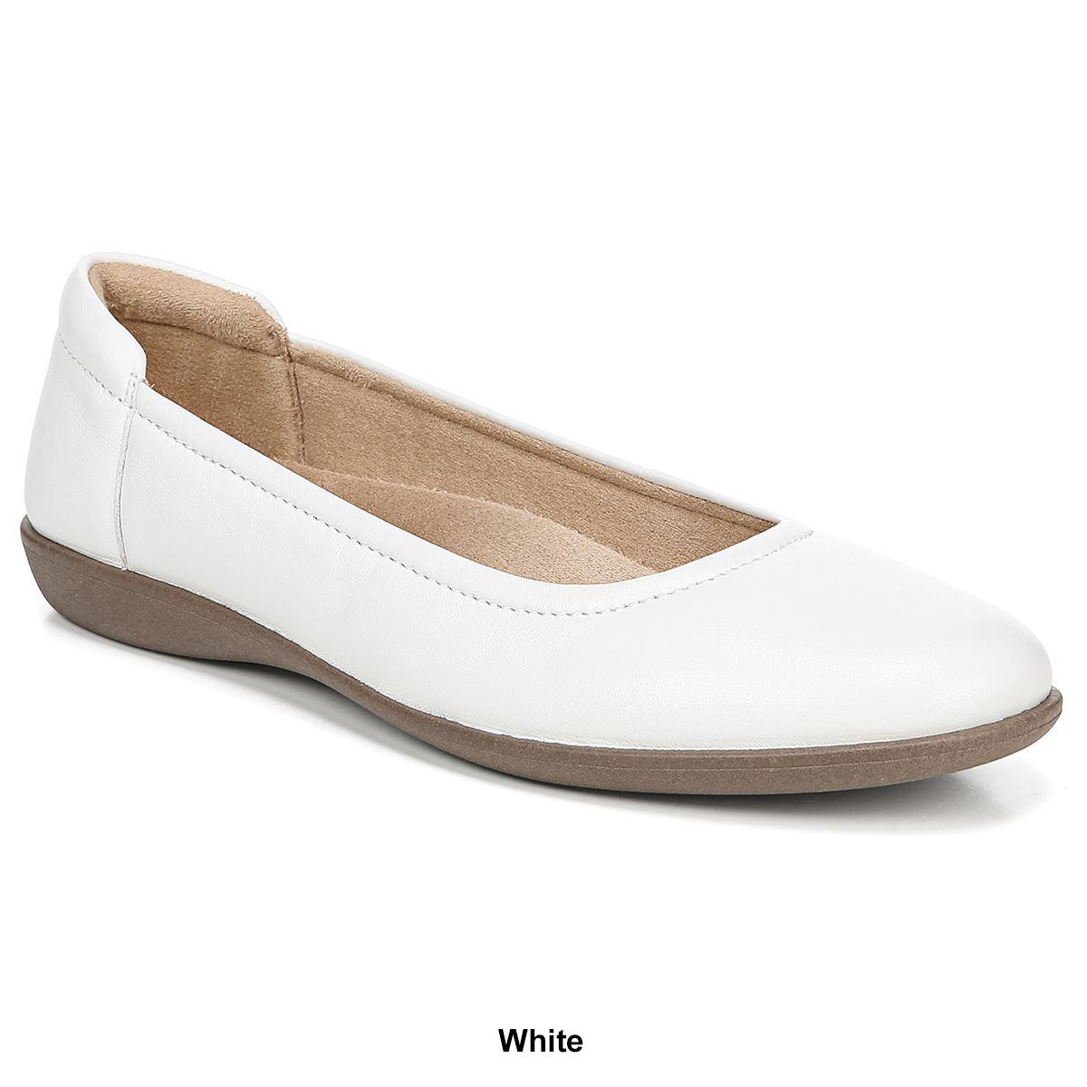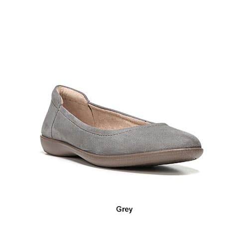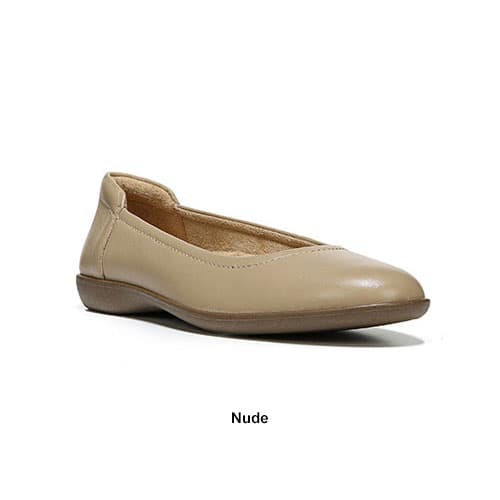 Description These Womens Naturalizer Flexy flats showcase leather uppers with N5 comfort technology, flexible soles, and added cushioning for the heel to toe balance. Material:...