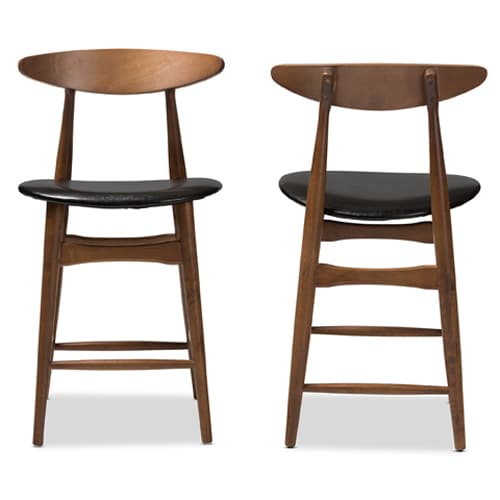 These Baxton Studio Flora stools come as a set of 2 are finished in a sumptuous walnut brown, bringing a warm feel to an interior pairing with a wide variety of modern and classical styled furnishings. The graceful lines of the counter stools are achieved through the expert craftsmanship of the distinctive curved and rounded edges along the sides, and the smooth grained texture of the chair. They are designed for everyday living and are supported by 4 tapered legs. Each of which is set at an angle to create a modern profile while also enabling more legroom underneath.