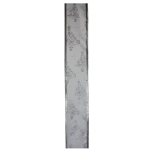 The Northlight Seasonal 12 pack silver glitter trees feature 10 yards in each roll of shiny white wired ribbon with glitter trees that is perfect for Christmas decorating or gift accenting. Sewn wire edged trim allows you to bend and shape your creations to decorate with ease. A total of 120 yards of ribbon. Materials: Polyester.