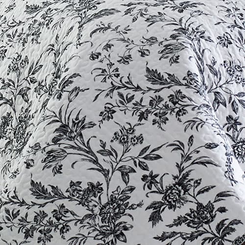Description The Laura Ashley® Amberley black quilt set features a floral toile design that has a timeless, classic and dramatic appeal in black and white. This set is pre-washed...