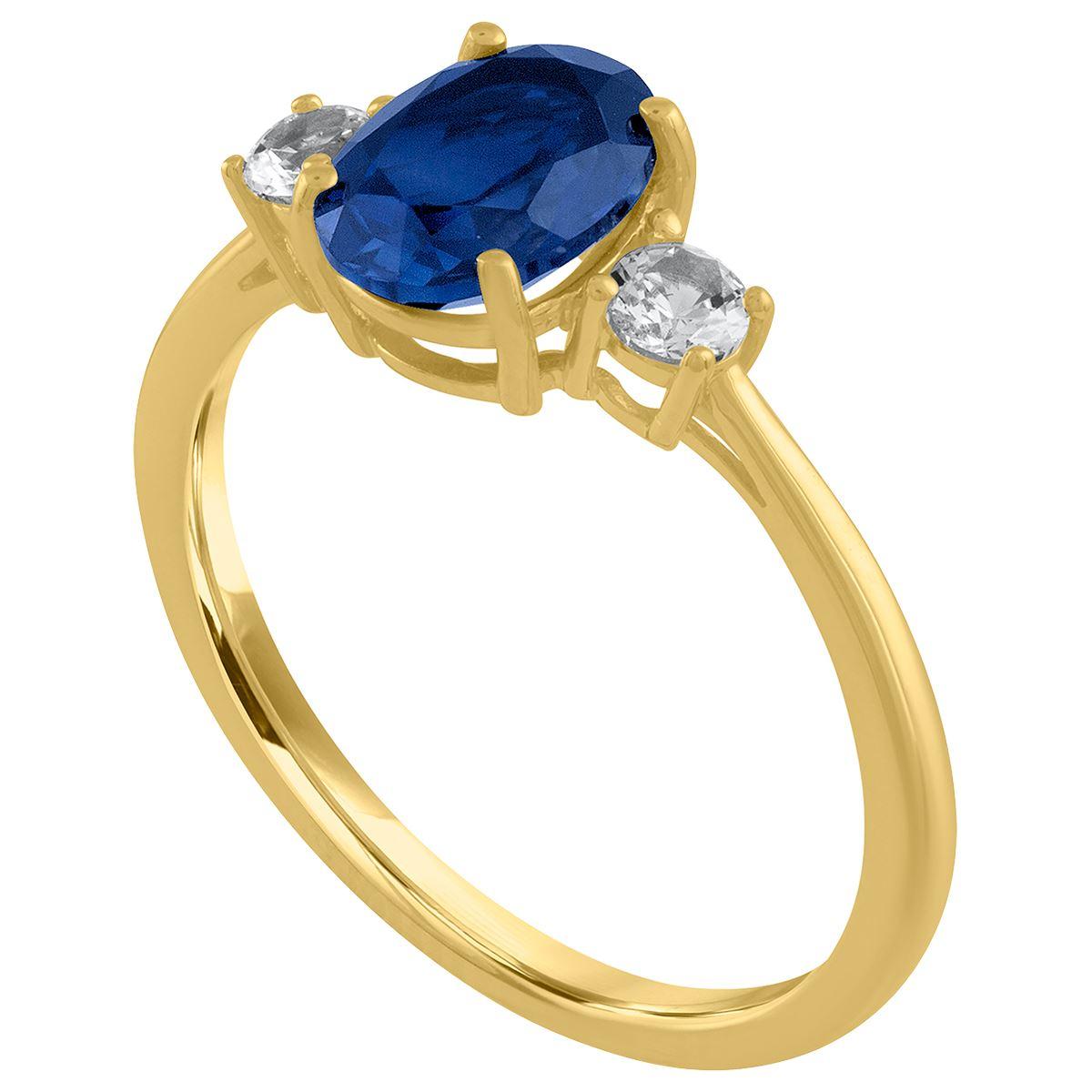 Set in 10kt. yellow gold, a stunning oval shaped created blue sapphire gemstone is accented with created white sapphire stones in this beautiful Gemstone Classics™ ring.