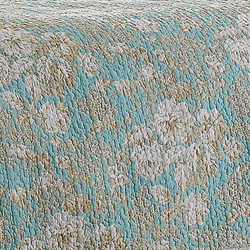 The Laura Ashley® Brompton quilt set features antique white roses highlighted against a rich aqua jade that updates this classic pattern. A taupe and white mini geometric coordinating pattern echoes the neutral leaves and accent tones in the floral print and adds a tailored note to this floral ensemble. 100% Cotton. Machine wash, cold. Tumble dry, gentle.