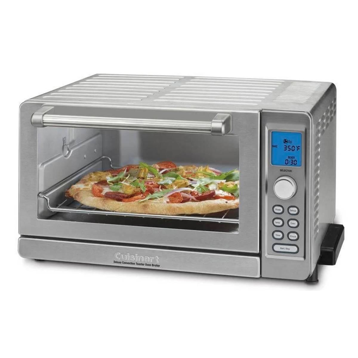 The Cuisinart® digital convection toaster is spacious and perfect for making quick meals! This fits 6 slices of bread or a 12" pizza. This features digital controls with a blue backlit display, quick and easy setting of function, temperature, and cook time. The exact heat sensor maintains precise oven temperatures, and the always even shade control ensures that toast consistently turns out the selected shade. Stainless steel. Dimensions: 20.5" x 11" x 17.4".This item requires oversize delivery. Please refer to the Order Summary in the Shipping step at checkout for delivery charge.This product contains (Este producto contiene) Perfluoroalkoxy alkane Polymer, Phosphorus, Polytetrafluoroethylene, Nickel and Nickel Compounds, Iron, Manganese and manganese compounds, Chromium Compounds, and Chromium total. For more information about chemicals in this product, visit (Para obtener mas informacion sobre productos quimicos en este producto, visite) https://checkout.cuisinart.com/chemical-disclosure.