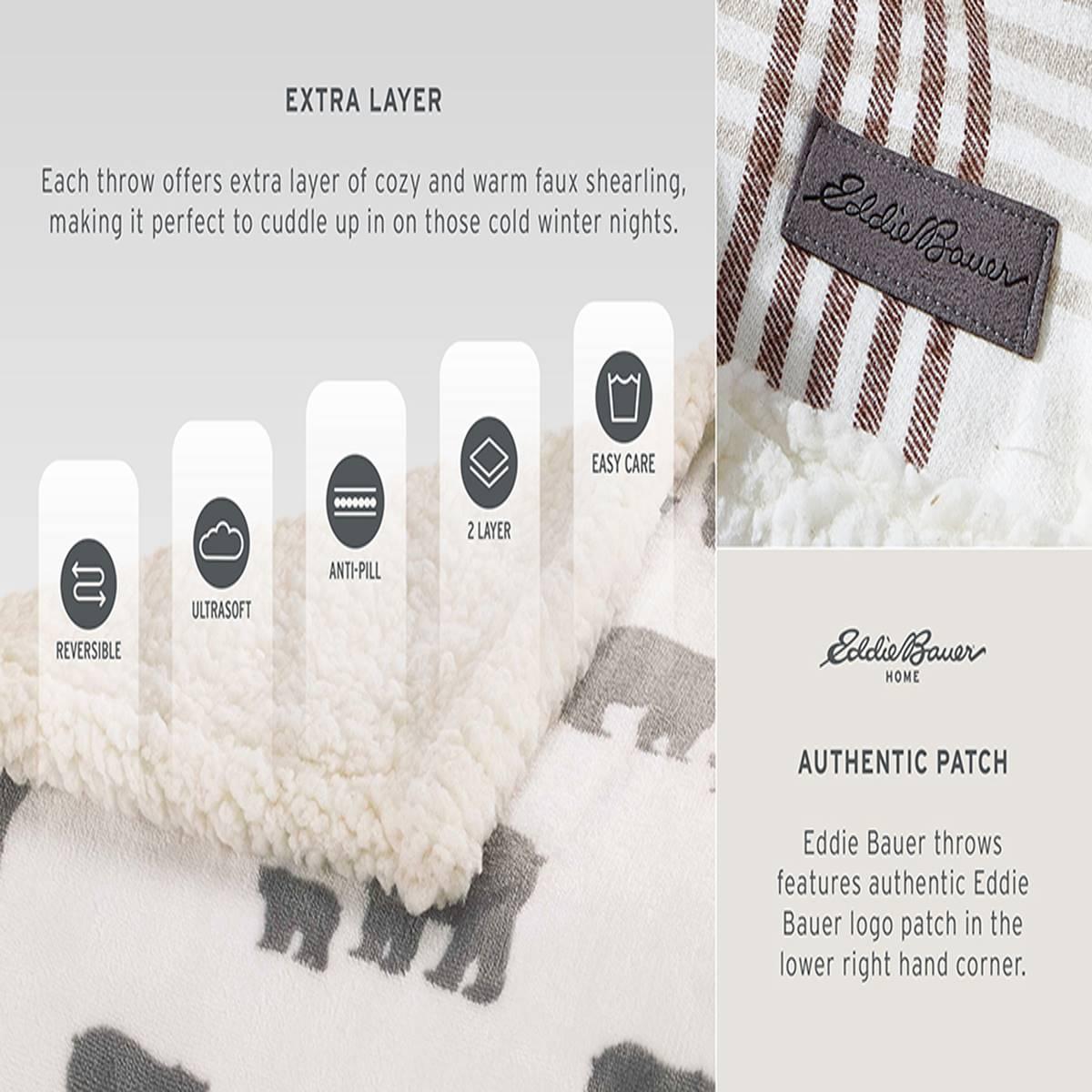 Description The Eddie Bauer Sycamore features a beige and red Aztec pattern on a dark brown background with beige fleece on the reverse. This throw will look great in any room...