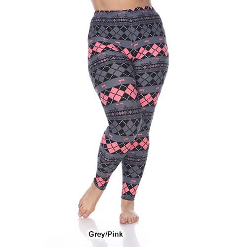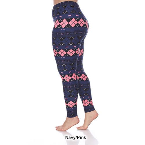 Plus Size White Mark argyle print leggings can be perfectly paired with any top and any shoes for a simple and casual look. These leggings are comfortable and soft against your skin. 90% Polyester. 10% Spandex. Hand wash. Hang dry. Inseam 28.