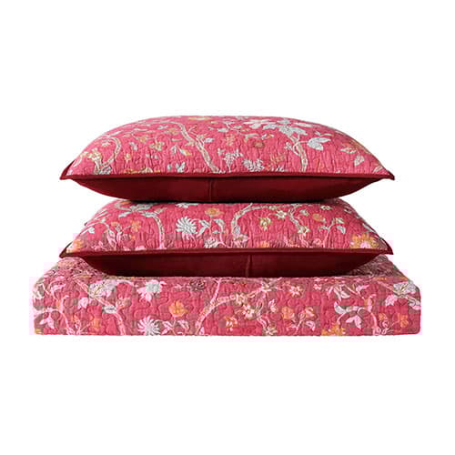 Description This Style 212 Bedford quilt set features a classic floral scroll print with vines and flowers while reversing to a solid color. Face: 100% Cotton. Reverse: 100%...