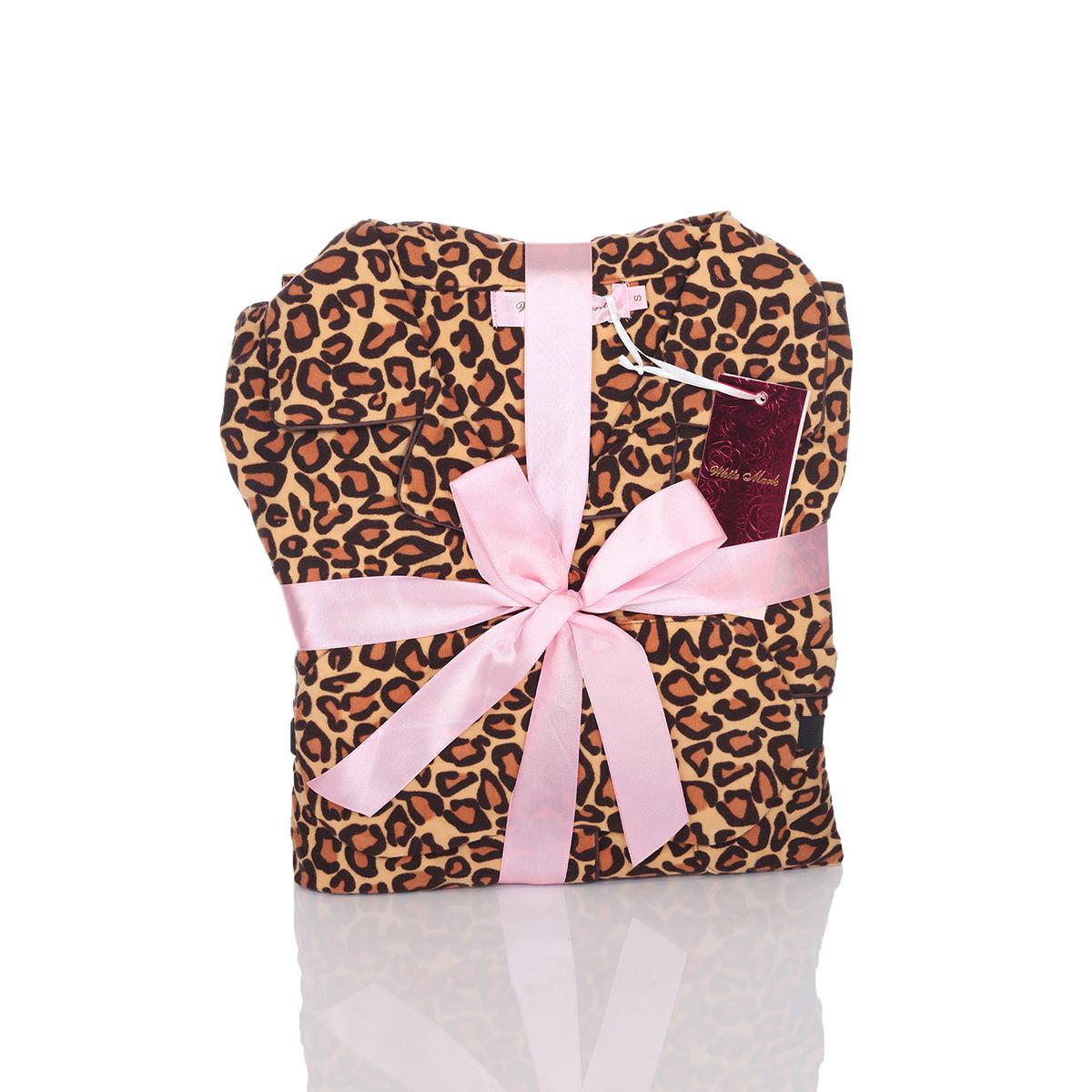 Description The Womens White Mark brown cheetah pajama set is very comfortable to touch and wear. The three-piece sleep set features a long-sleeve button-down top, long leg...