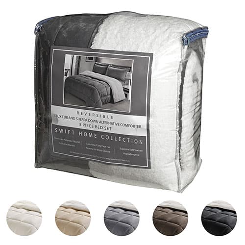 Description With the Swift Home luxurious sherpa faux fur comforter set you will easily combat the cold weather. The alternative comforter is made out of a hypoallergenic...
