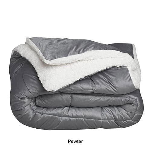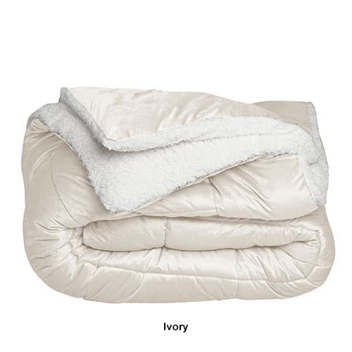 With the Swift Home luxurious sherpa faux fur comforter set you will easily combat the cold weather. The alternative comforter is made out of a hypoallergenic material that is sophisticated and elegant with a detailed square design. The faux fur has a polyester fiberfill, is reversible and its superior soft texture on both sides will keep you warm and cozy. The set includes one comforter and a standard pillow sham(s). 100% Polyester. Machine wash in cold water on the gentle cycle. Wash dark colors separately. Tumble dry low and remove promptly.