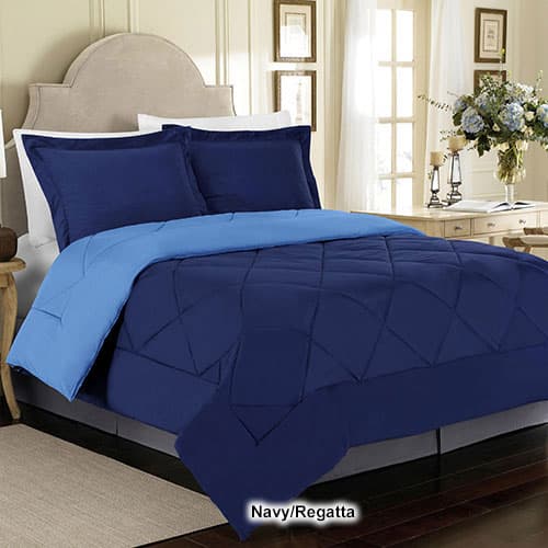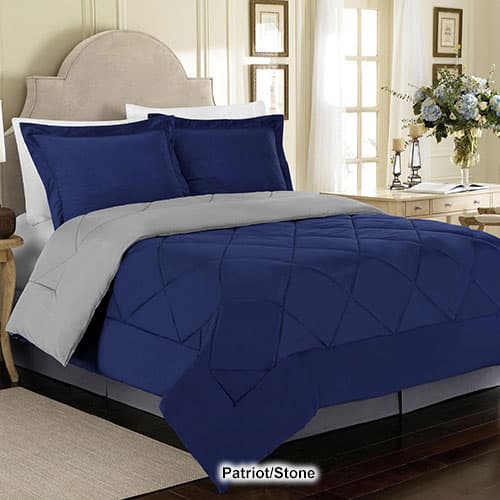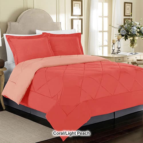 Ultra-soft reversible comforter set is perfect for any bedroom including master or guest bedroom with its modern fashion forward style. This ultra-soft reversible comforter is 90 GSM making both sides gentle, soft and cozy providing just what you need for a long restful night. This set includes one comforter and pillow sham(s). 100% Polyester. Machine wash cold on the gentle cycle. Wash dark colors separately. Only non-chlorine bleach when needed. Tumble dry low and remove promptly.