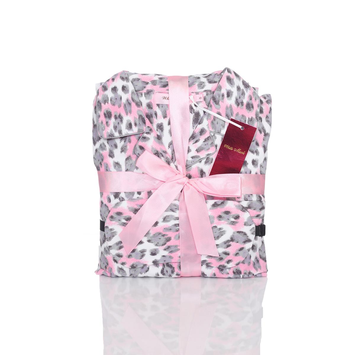 Description The Womens White Mark grey cheetah pajama set is very comfortable to touch and wear. The three-piece sleep set features a long-sleeve button-down top, long leg...