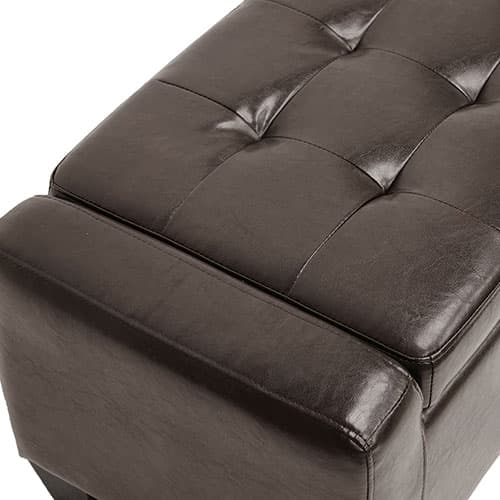 This Baxton Studio Manchester ottoman unites stately charisma with utilitarian attention to storage space. This contemporary tufted ottoman features bonded leather with a genuine eucalyptus wood frame. The cushioned top provides added seating or a comfortable footrest and soft corners contrast against angular wedge feet. Spot clean only. Dimensions: 15.3”H x 45.5”W x 17.1”D.