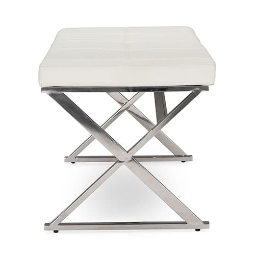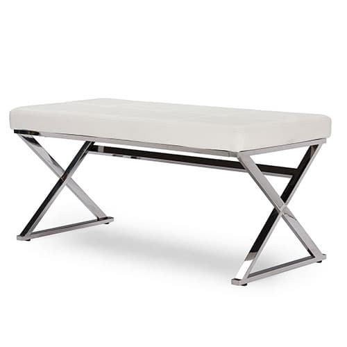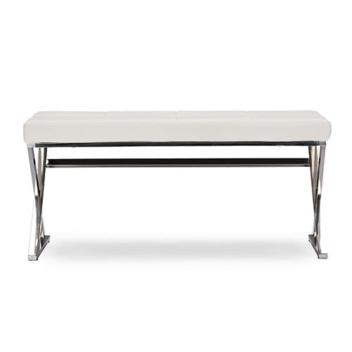 Description This Baxton Studio Herald rectangular bench has a white faux leather upholstered cushion atop a stainless steel, "X" shaped base. The multi-purpose design allows it...